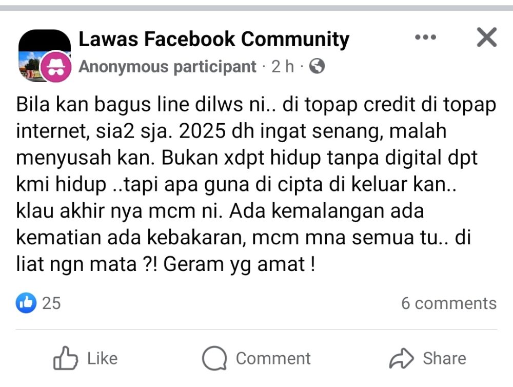 LAWAS: Isu gangguan perkhidmatan telekomunikasi, khususnya internet, di Daerah Lawas menjadi topik paling hangat diperkatakan sepanjang minggu ini.