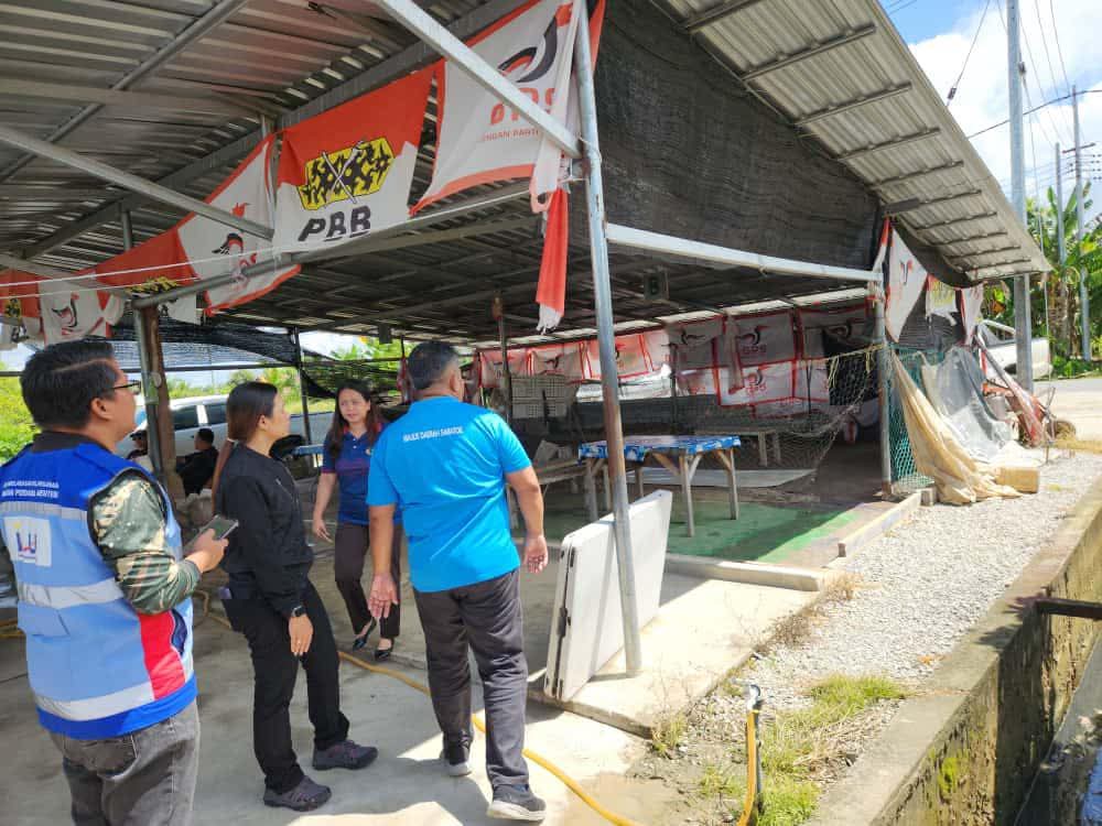 KAUNSELOR Kasdi Pandi yang mewakili ADUN Kalaka melakuian lawatan naik taraf Gelanggang Gasing Kenyalang di Kampung Tanjung Hulu Saratok, semalam. Foto: Pusat Khidmat ADUN Kalaka