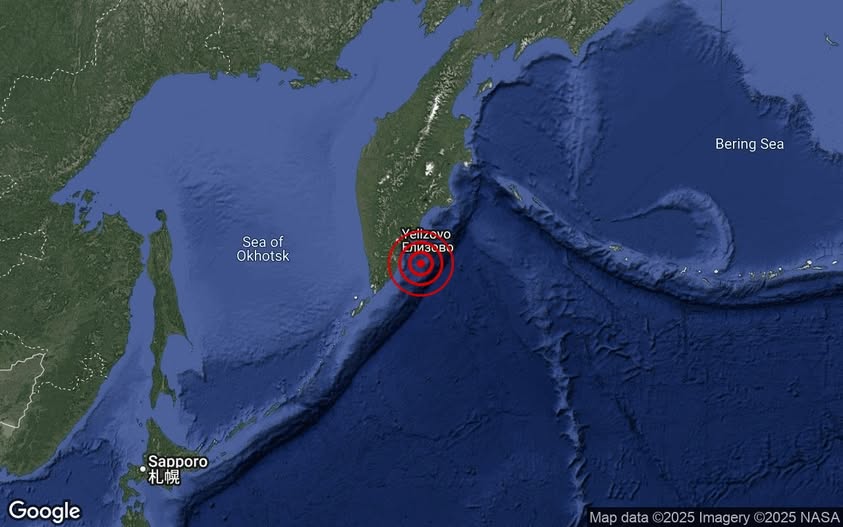Gempa pertama berlaku pada 2328 GMT di kawasan pantai timur Kamchatka dengan pusat gempa berada pada kedalaman 10 kilometer, terletak pada 52.26 darjah utara dan 159.99 darjah timur.