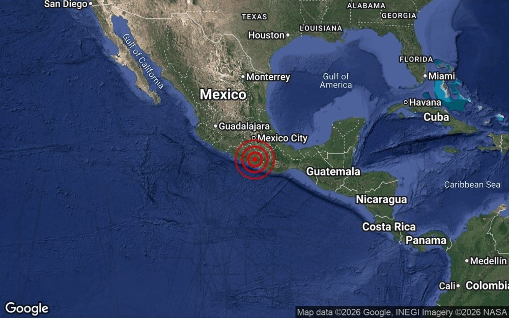 Pusat gempa dikesan pada kedalaman 35.0 km, yang pada mulanya ditentukan berada pada latitud 16.90 darjah utara dan longitud 99.30 darjah barat.