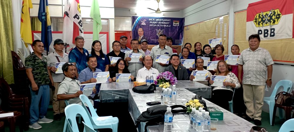 MARUDI: Sejumlah RM407,500.00 peruntukan Projek Kecil Luar Bandar (MRP) diagihkan hari ini kepada 23 Jawatankuasa Kemajuan dan Keselamatan Kampung (JKKK) serta organisasi lain dalam kawasan Dewan Undangan Negeri (DUN) Mulu.