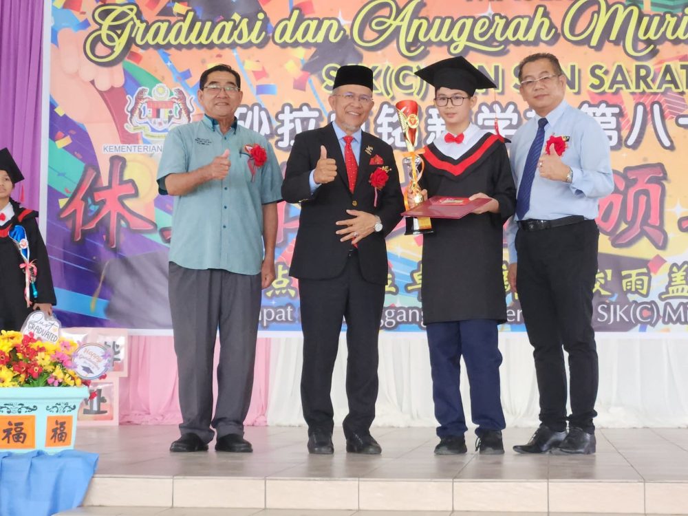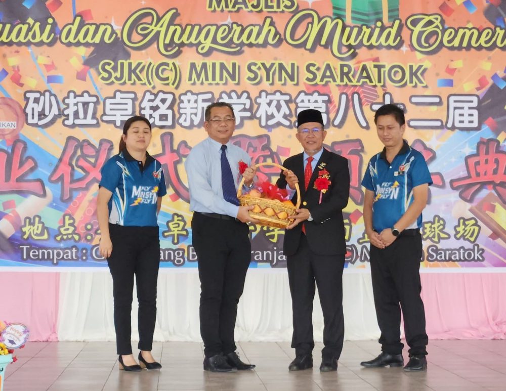 SARATOK: Majlis Graduasi dan Anugerah Murid Cemerlang Sesi Persekolahan 2025 Sekolah Jenis Kebangsaan Cina (SJKC) Min Syn Saratok, hari ini, bukan sahaja meraikan pencapaian murid, malah memberi penghargaan khusus kepada para guru yang mendidik dengan penuh sabar dan kasih sayang.