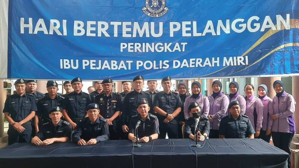 “Satu sesi ceramah kesedaran yang disampaikan oleh Bahagian Siasatan Jenayah Komersil (BSJKD) IPD Miri Insp. Huong Yeou Tay yang memberi penerangan mengenai taktik dan modus operandi sindiket penipuan dalam talian.