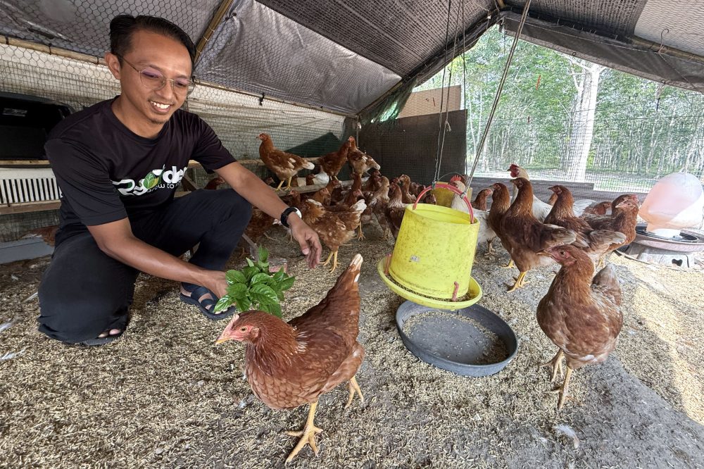 Dia turut menternak kira-kira 50 ekor ayam penelur jenis Lohmann Brown, yang mampu menghasilkan antara 40 hingga 50 biji telur setiap hari, selain 50 ekor ayam kampung untuk mendapatkan daging segar.