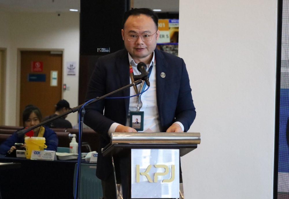 AMANAT… Dr. Kenny Yeap Kim Pey berucap pada program Pelancaran Klinik Saringan Kesihatan. Foto KPJ