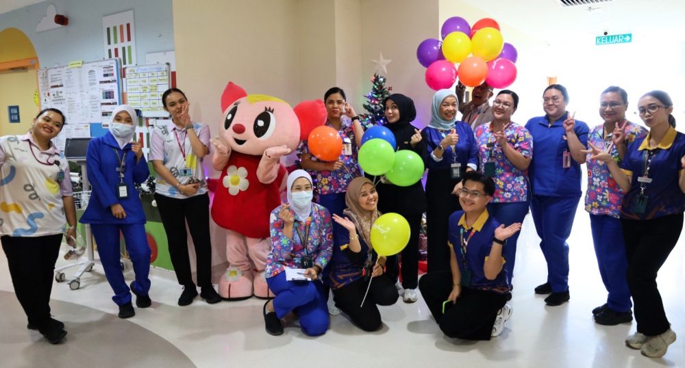 SUASANA majlis turut dimeriahkan dengan kehadiran maskot Kidzoona, Lala, yang mengunjungi Klinik dan Wad Pediatrik bagi menceriakan pesakit kanak-kanak dan ahli keluarga mereka. Foto KPJ