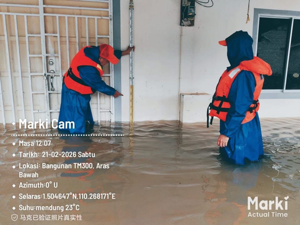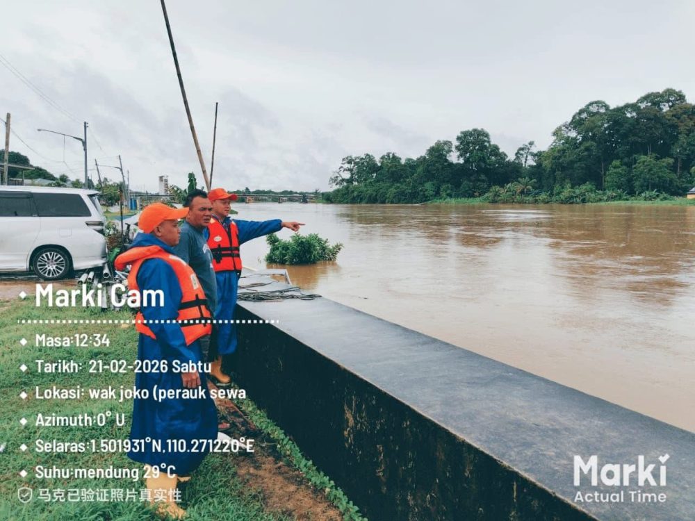 KUCHING: Tindakan proaktif yang dilaksanakan oleh Angkatan Pertahanan Awam (APM) Kuching memastikan keadaan di Kampung Rantau Panjang kekal selamat dan terkawal meskipun hujan renyai-renyai berterusan, hari ini.