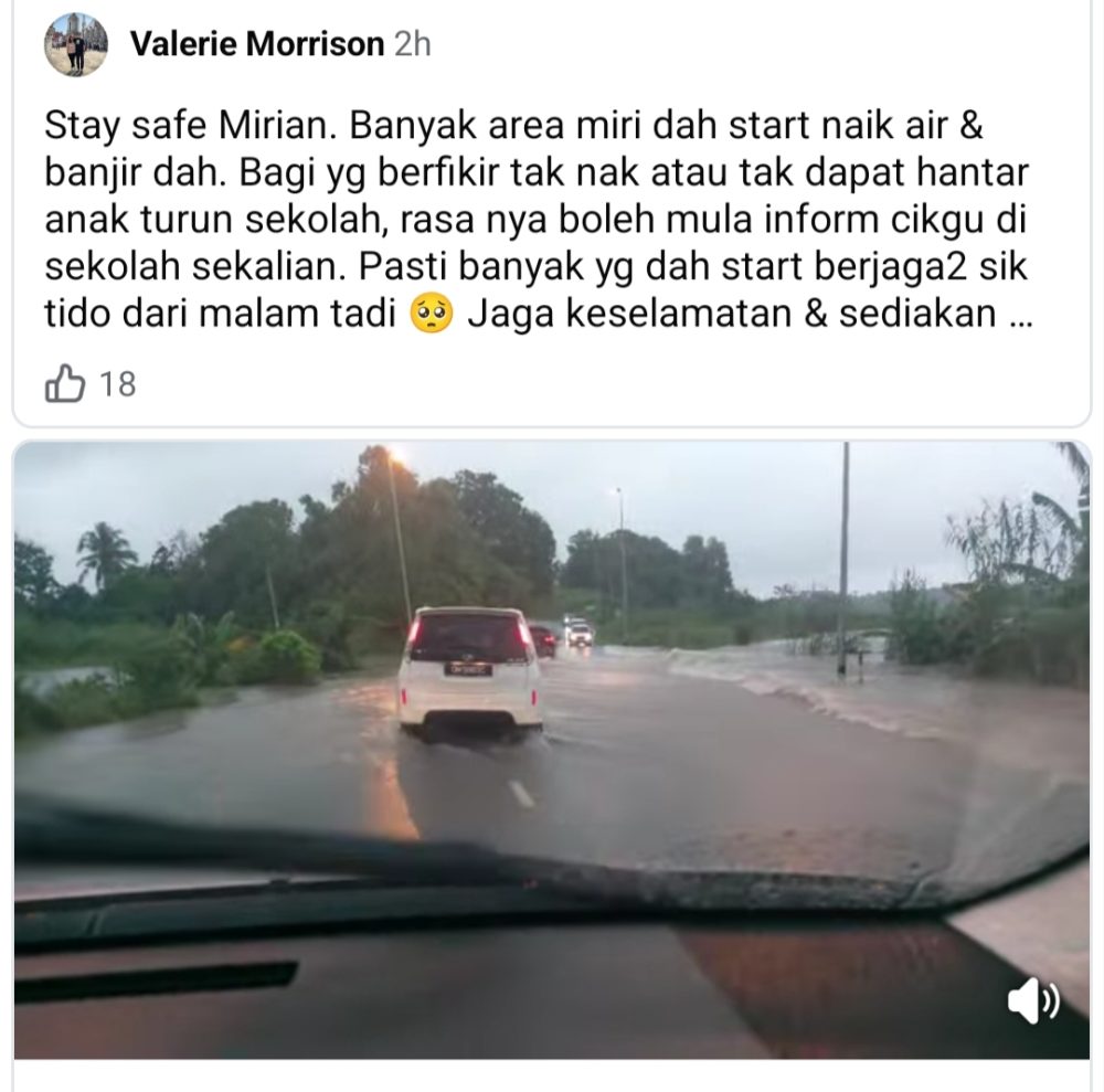 Penduduk setempat turut berkongsi keadaan banjir kilat di media sosial, memaparkan kenderaan bergerak perlahan dan ada yang terpaksa berpatah balik ekoran air naik mendadak sejak awal pagi.