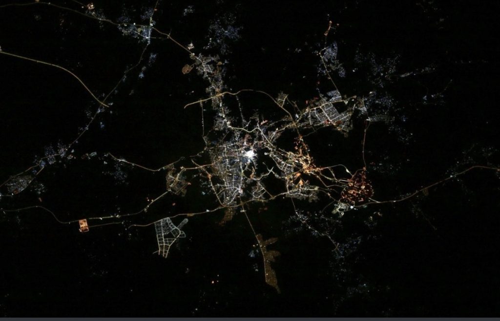 Imej yang dirakam dari Stesen Angkasa Antarabangsa (ISS) itu menonjolkan tapak paling suci umat Islam sebagai pusat yang bercahaya di tengah-tengah bandar raya berkenaan.