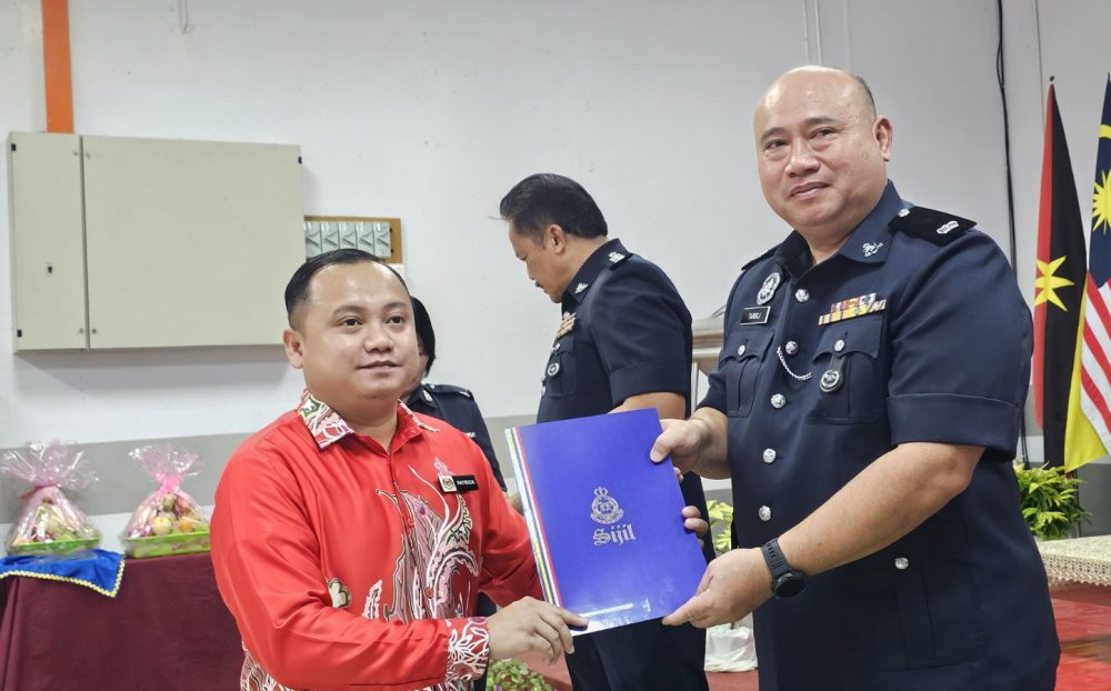 DSP Tansli Mering menyerahkan sijil pemghargaan kepada penerima.