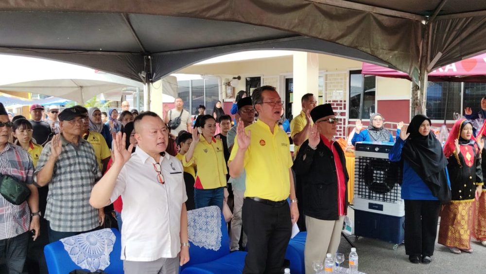 Wilfred Yap bersama para peserta ketika lafaz Rukun Negara.