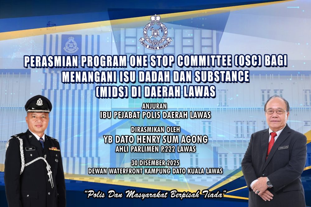 LAWAS: Ibu Pejabat Polis Daerah (IPD) Lawas akan mengadakan program Pusat Sehenti bagi Menangani Isu Dadah dan Bahan Terlarang di Tebingan Sungai Kampung Dato Kuala Lawas esok.