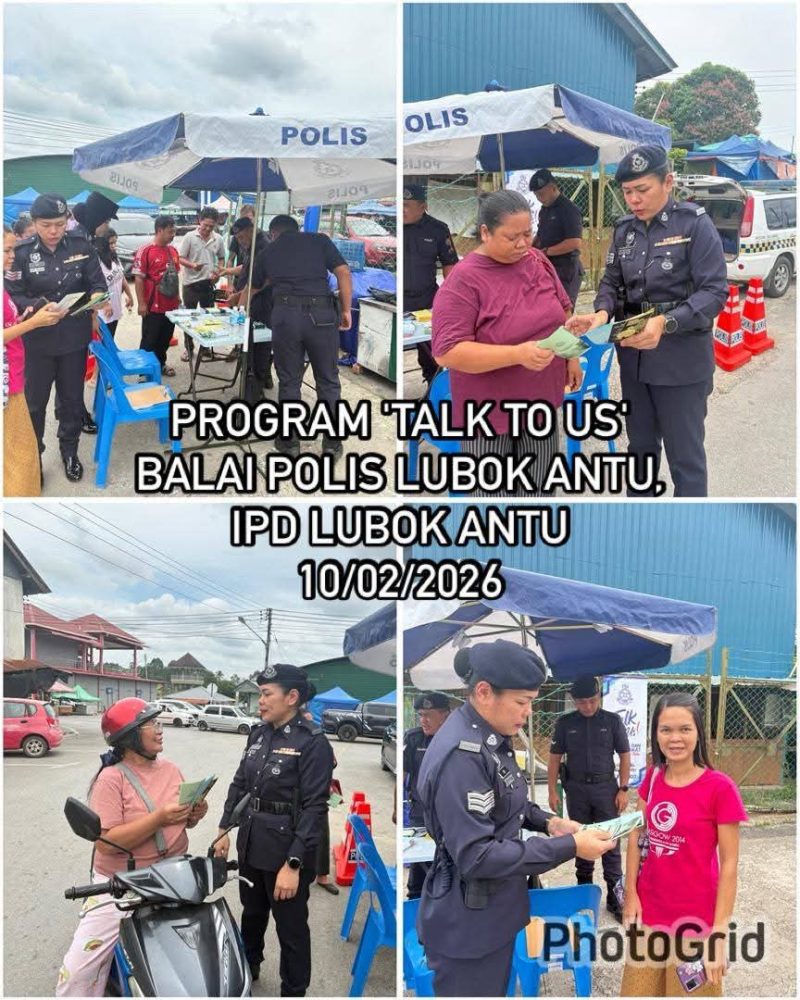 Dalam masa sama, Program ‘Talk To Us’ yang diketuai oleh Penolong Ketua Polis Balai Lubok Antu, Sarjan Lee Mui Lin, memperkasakan pendekatan ‘omnipresence’ melalui kehadiran anggota polis dalam komuniti serta menggalakkan orang awam berperanan sebagai ‘mata dan telinga’ dalam menyalurkan maklumat berkaitan jenayah.
