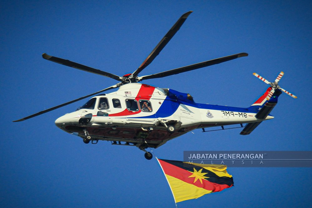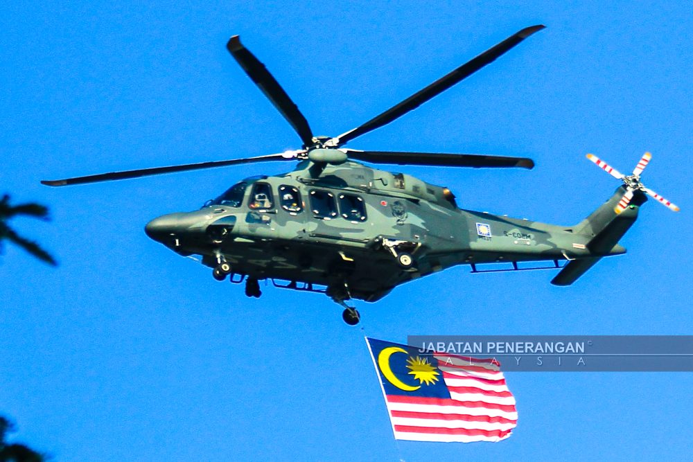LALUAN lintas hormat udara oleh helikopter sebagai tanda penghormatan sempena sambutan Hari Lahir Ke-79 Yang di-Pertua Negeri Sarawak.