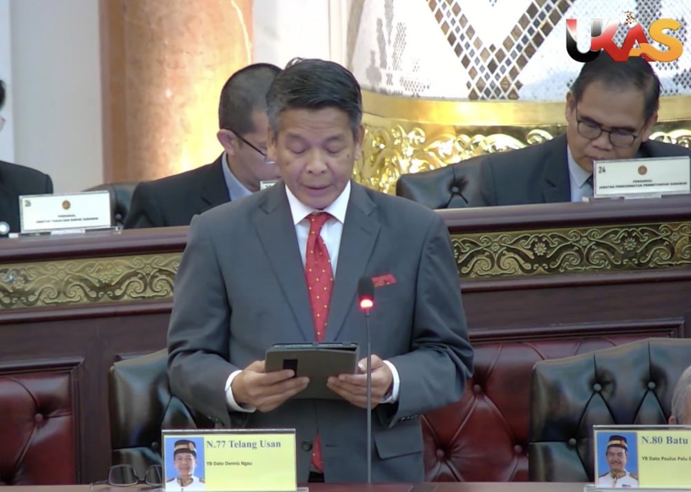 DATO Dennis Ngau berbahas di Persidangan DUN Sarawak, Petra Jaya.