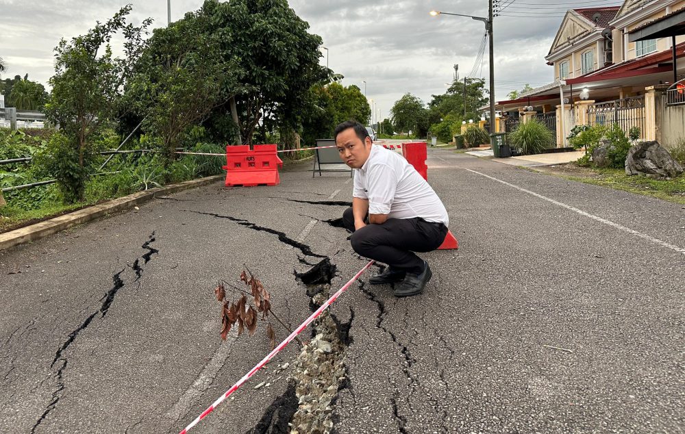 “Pada mulanya hanya rekahan kecil, tetapi kini jalan tersebut telah mendap dengan ketara dan membahayakan keselamatan penduduk serta pengguna jalan raya.