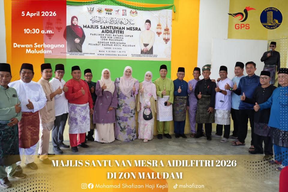 Mohamad Shafizan turut menzahirkan penghargaan kepada semua pihak termasuk Pejabat Daerah Kecil Maludam, Ketua Masyarakat dan Ketua Kaum (KMKK), ahli Parti Pesaka Bumiputera Bersatu (PBB) Lingga, serta Jawatankuasa Masjid Mualimin atas kerjasama menjayakan majlis yang penuh bermakna itu.