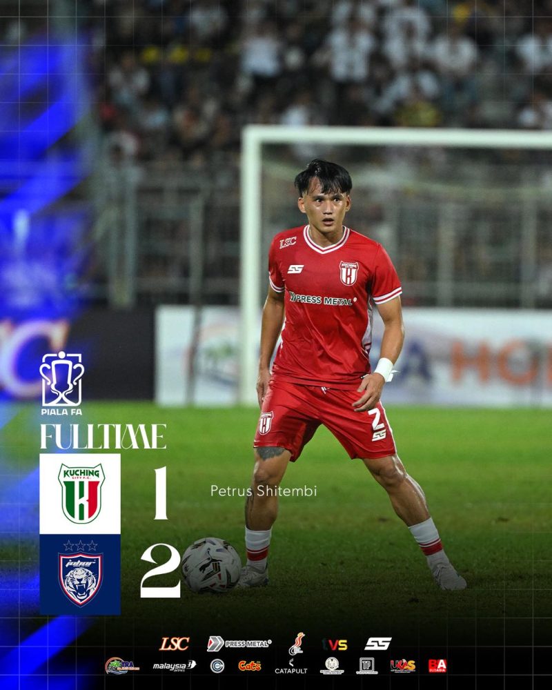 KUALA LUMPUR: Juara bertahan Johor Darul Ta’zim (JDT) meletakkan sebelah kaki ke pentas akhir Piala FA selepas mencatat kemenangan 2-1 ke atas Kuching City FC pada aksi separuh akhir pertama yang berlangsung sengit di Stadium Negeri di Sarawak malam ini.