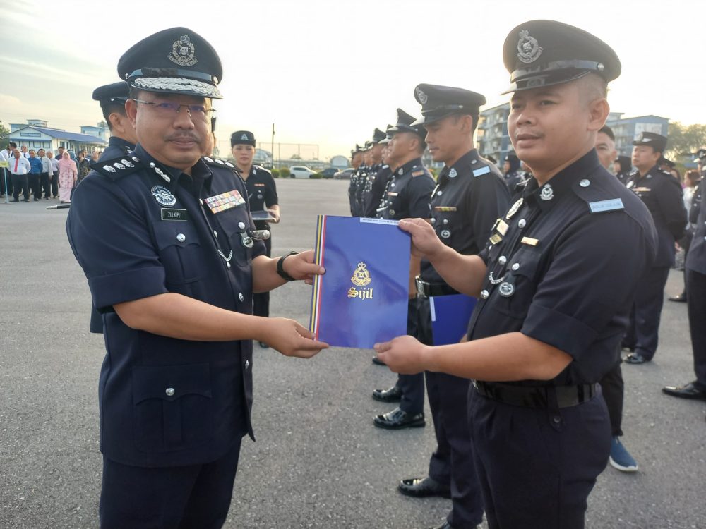 KETUA Polis Daerah Sibu, ACP Zulkipli Suhaili menyampaikan sijil penghargaan kepada salah seorang anggota Perhimpunan Bulanan IPD Sibu bagi Januari.