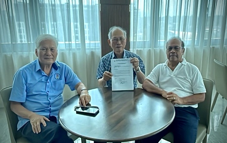 PELANTIKAN… Dato Sri Joseph Salang Gandum (tengah) menerima surat pelantikan sebagai Penasihat Khas DCCI bagi penggal 2026–2029 daripada Presiden DCCI, Dato Allan Keripin Nangkai (kiri), disaksikan Naib Presiden Kanan, Datuk Winsel Ahtos.