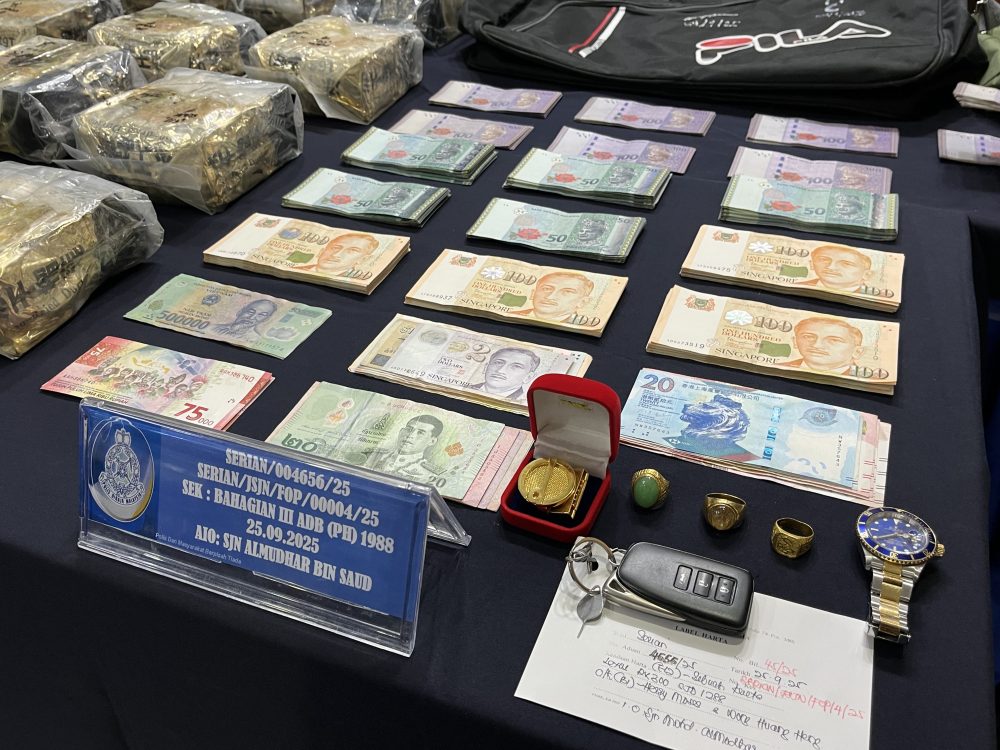 Dalam serbuan itu, polis turut menyita harta bernilai RM448,272.71 termasuk wang tunai RM19,350, wang tunai mata wang asing bernilai RM68,225.27, tiga bentuk cincin emas bernilai RM27,393.03, kepala tali pinggang emas bernilai RM28,304.41, seutas jam tangan jenama Rolex bernilai RM55,000 serta sebuah kereta Lexus RX300 bernilai RM250,000.