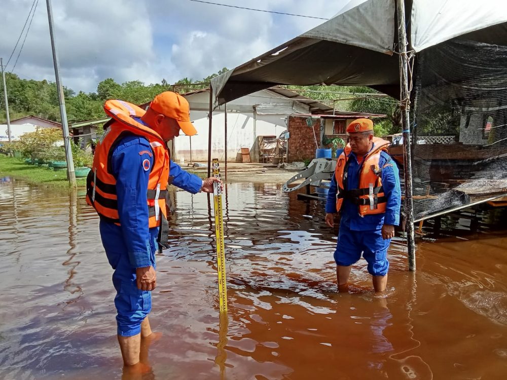 PANTAU…APM Marudi memantau kawasan yang dinaiki air di Kampung Padang Kerbau. Foto APM Marudi