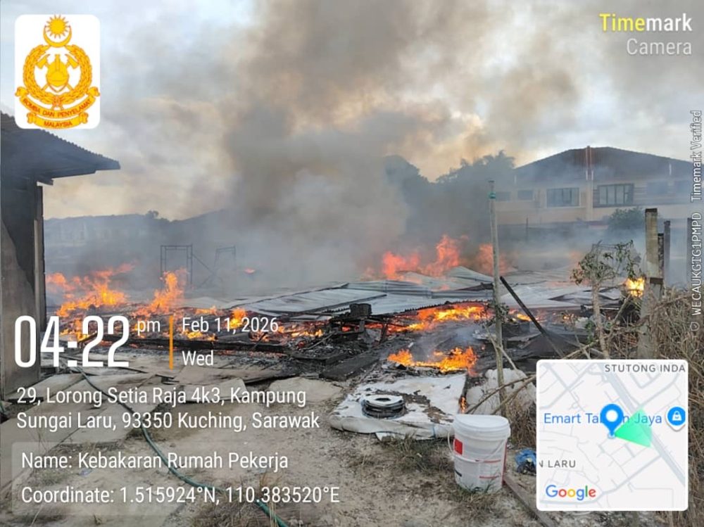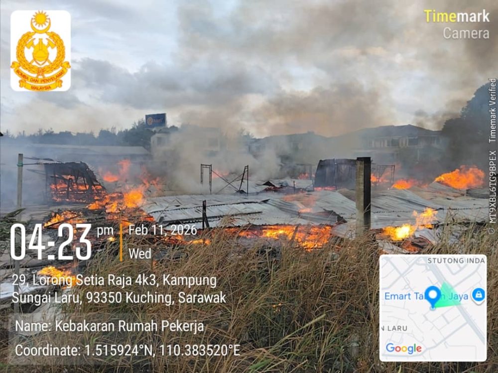 “Kebakaran berjaya dikawal pada 4.45 petang. Insiden melibatkan tiga blok rumah pekerja sementara yang tidak kekal.