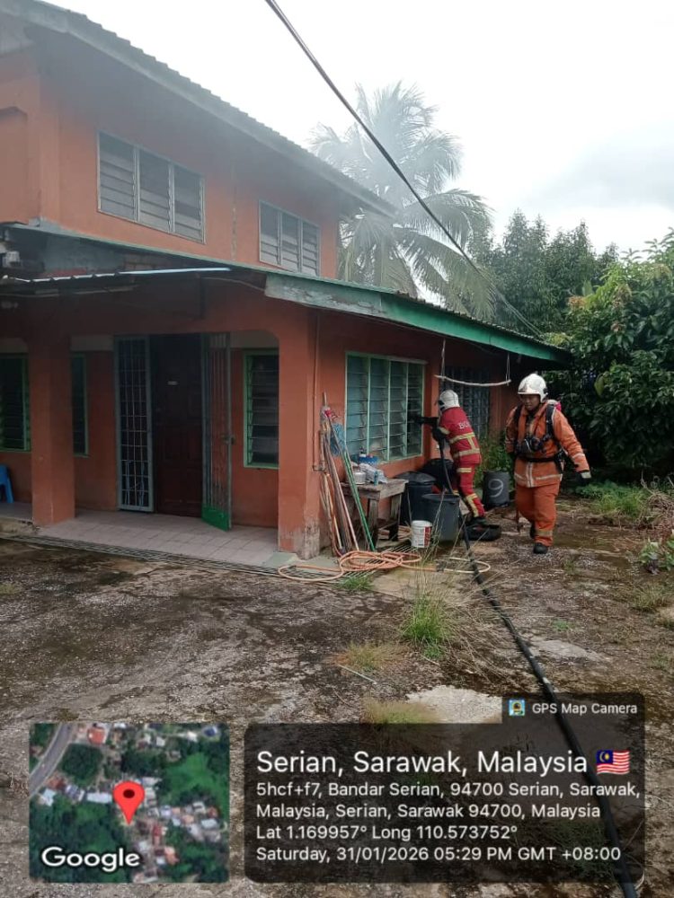 Pusat Gerakan Operasi (PGO) menerima panggilan kecemasan pada 5.21 petang dan jentera dari Balai Bomba dan Penyelamat (BBP) Serian digerakkan ke lokasi kira-kira 4 kilometer dari balai.