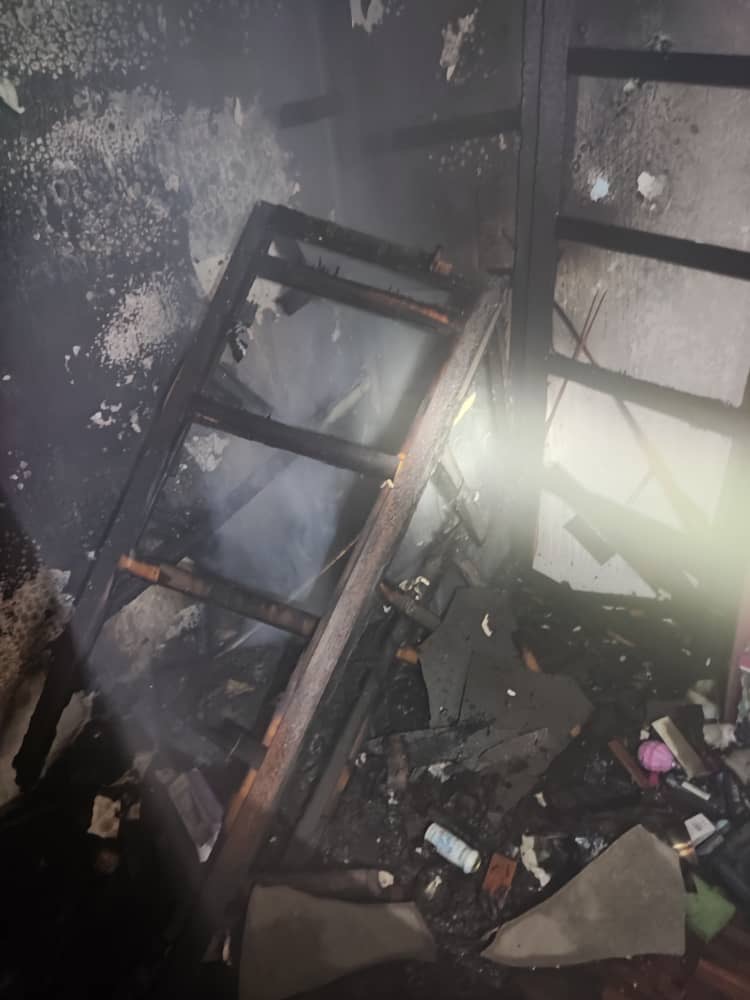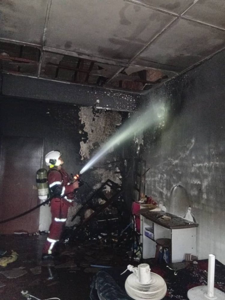 Kebakaran melibatkan sebuah rumah struktur kekal dua tingkat yang berlaku di bilik tidur tingkat atas, dengan anggaran kemusnahan sekitar 30 peratus dan keluasan bilik dianggarkan 10 x 20 kaki persegi.