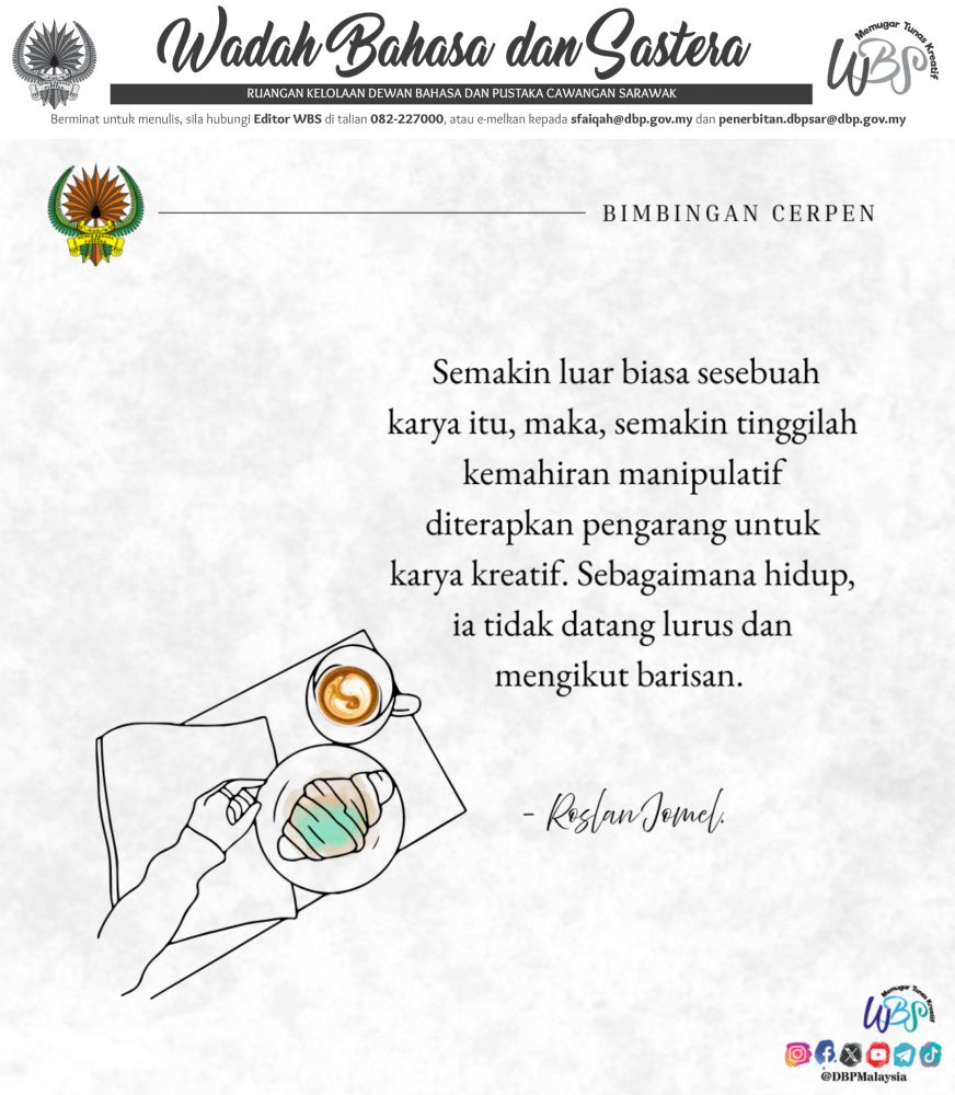 Mengarang karya kreatif juga adalah tentang kemahiran manipulasi. Itu mungkin kedengaran agak sadis, tetapi memang dituntut dalam urusan kesenian. Semakin luar biasa sesebuah karya itu, maka, semakin tinggilah kemahiran manipulatif diterapkan pengarang untuk karya kreatif. Sebagaimana hidup, ia tidak datang lurus dan mengikut barisan.