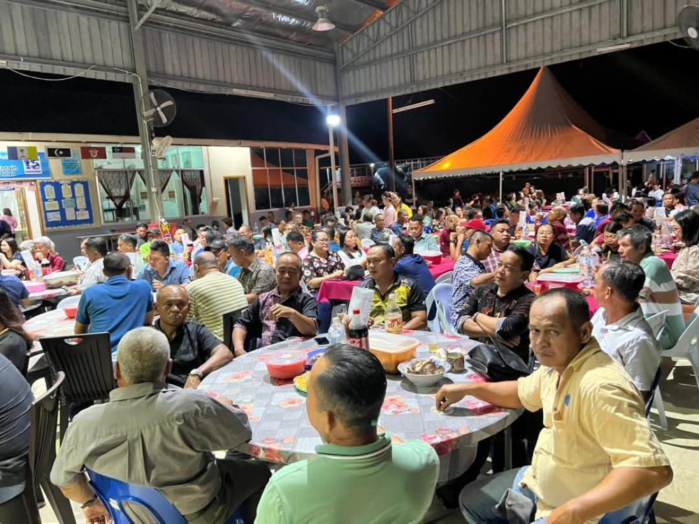 MAKAN MALAM… Antara komuniti setempat yang hadir di Dewan Terbuka Dato Rolland Duat Jubin. Foto Facebook Dato Rolland Duat