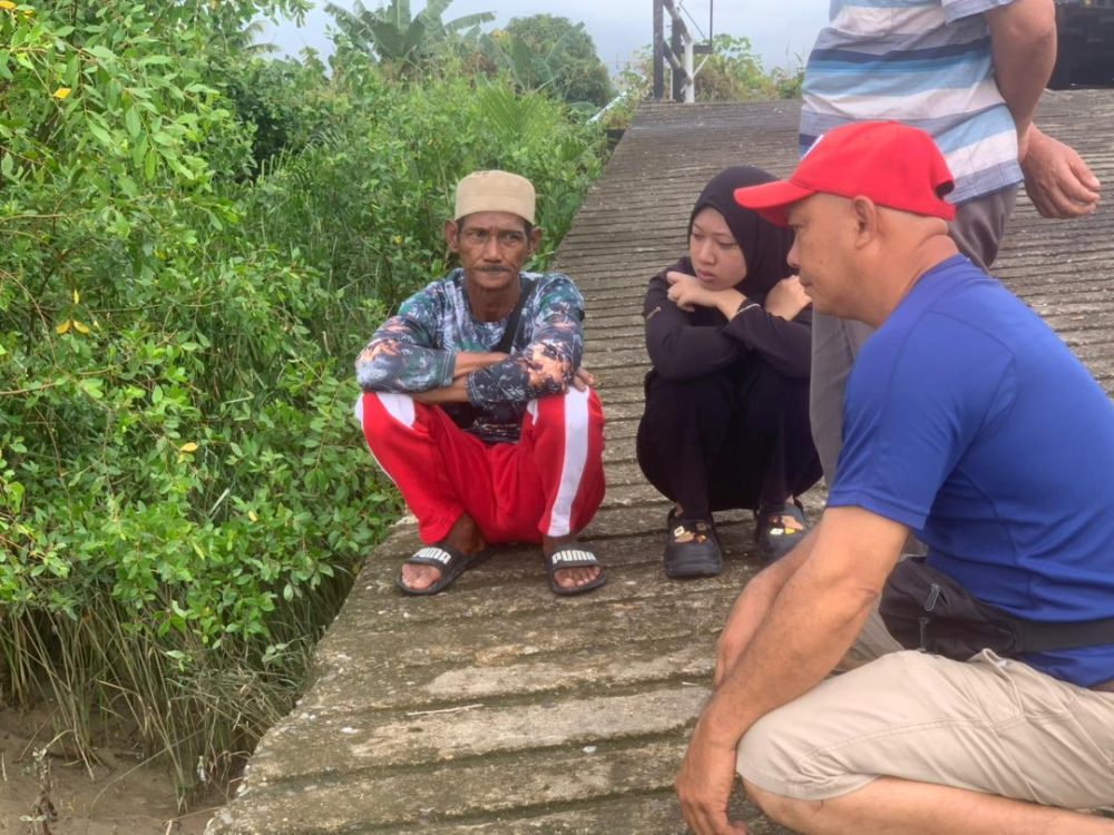 Kelihatan bapanya ditemani adik perempuannya duduk di tebing sungai setia menanti sambil memerhati pergerakan bot penyelamat.