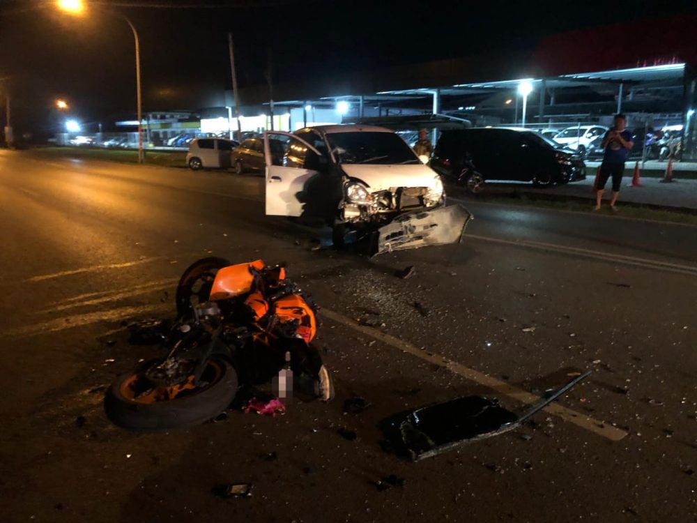 SARIKEI: Seorang lelaki berumur 21 tahun patah lengan kiri dan kecederaan di paha kiri selepas terlibat dalam kemalangan jalan raya di Jalan Repok, malam tadi.