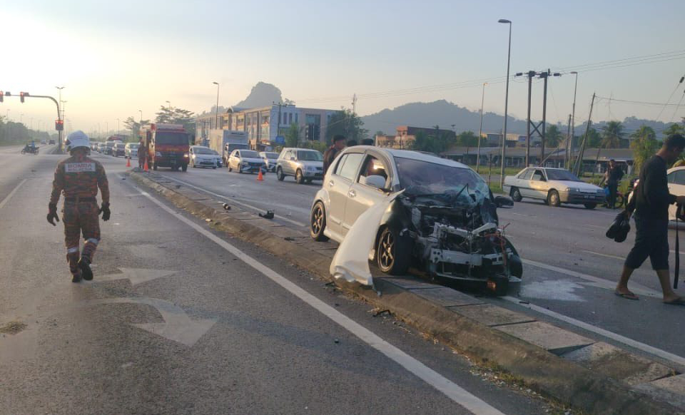 Pasukan bomba tiba di lokasi pada 7.07 pagi dan mendapati kemalangan melibatkan dua kenderaan iaitu sebuah lori tiga tan dan sebuah Perodua Myvi.