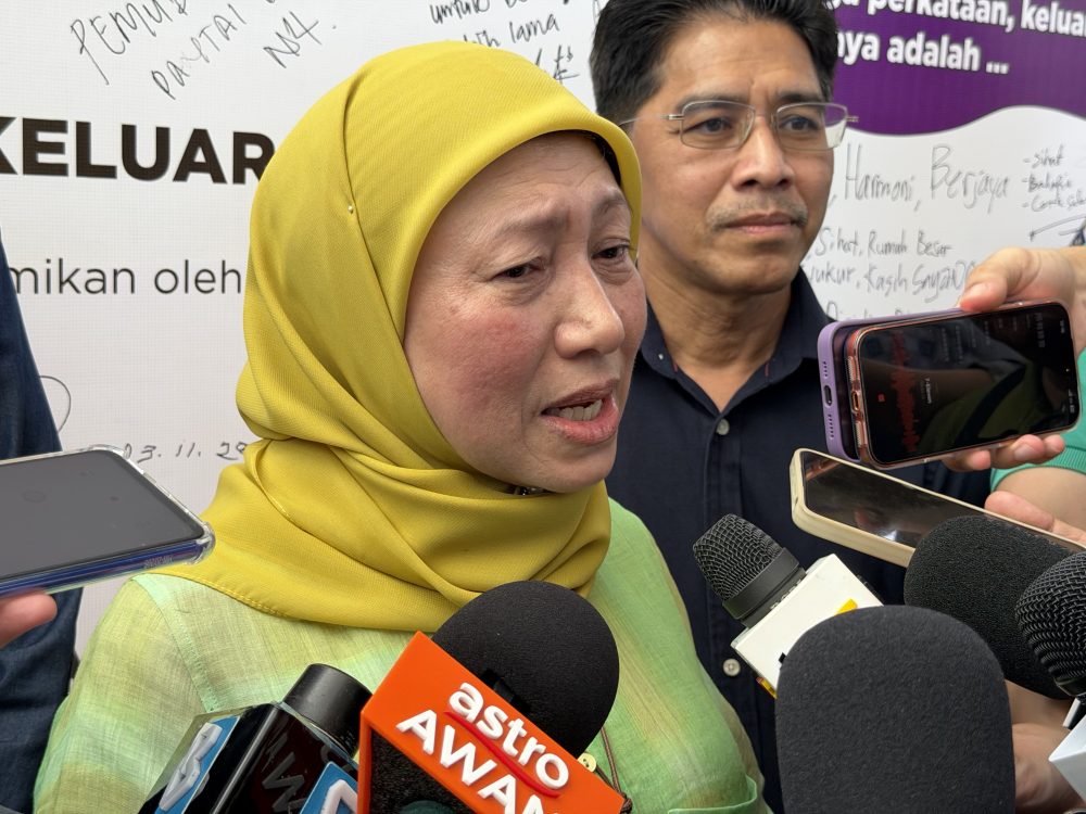 JELASKAN… Dato Sri Nancy Shukri ketika ditemui pemberita selepas ditemui pemberita selepas menghadiri Kem Kasih Keluarga 2.0 di Damai Central, di Santubong, hari ini.