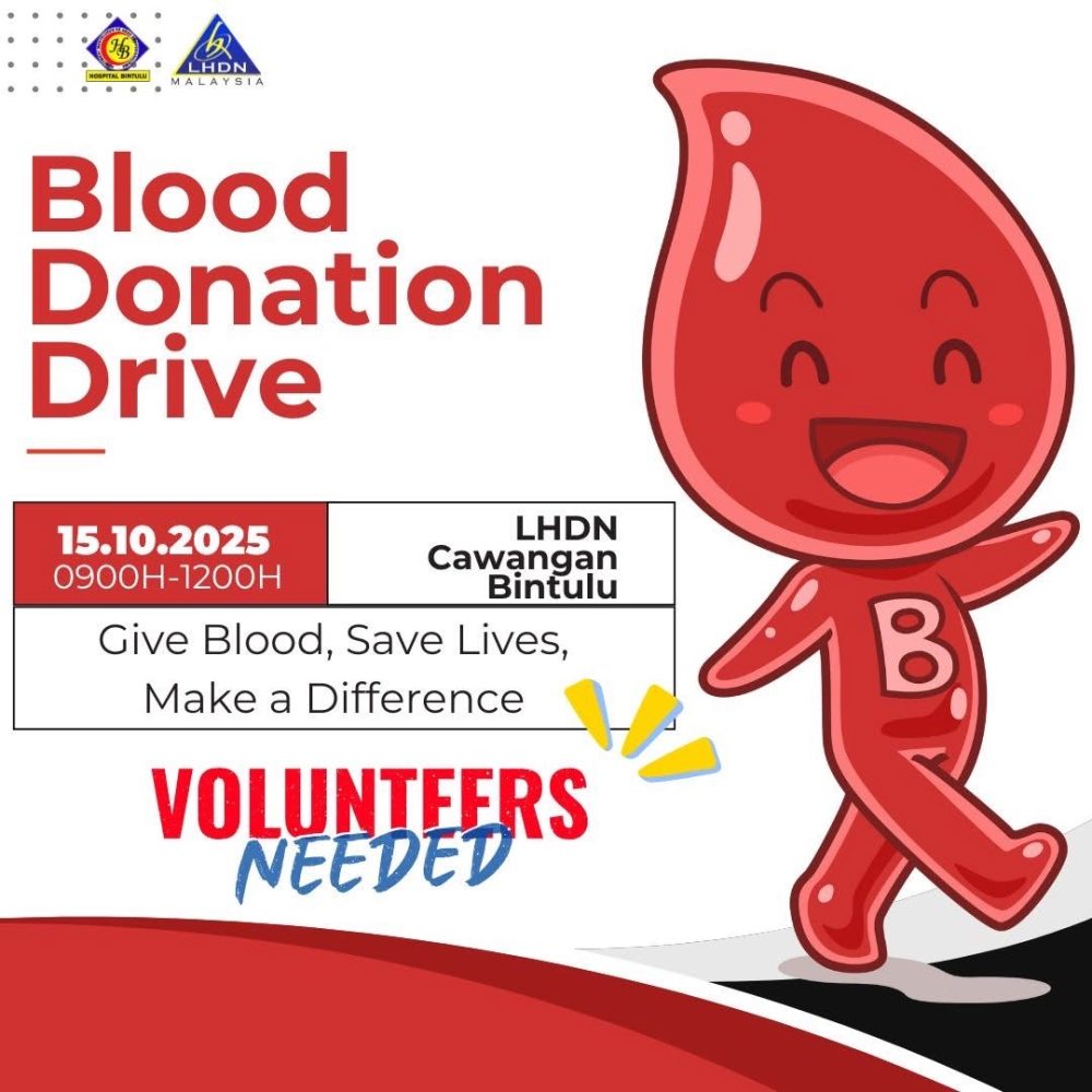 BINTULU: Tabung Darah Hospital Bintulu dengan kerjasama Lembaga Hasil Dalam Negeri (LHDN) Cawangan Bintulu akan menganjurkan Kempen Derma Darah pada 15 Oktober ini bertempat di LHDN Cawangan Bintulu.