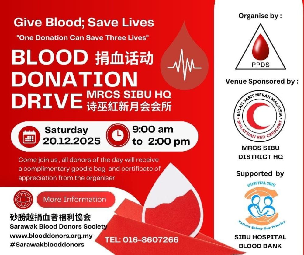 Untuk maklumat lanjut mengenai aktiviti kempen derma darah, orang ramai boleh menghubungi Bank Darah Hospital Sibu di talian 084-343333 sambungan 2010.