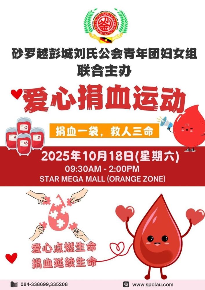 SIBU: Orang ramai dijemput menyertai Kempen Derma Darah anjuran Pemuda dan Wanita Persatuan Klan Pan Chen Lau Sarawak yang akan berlangsung pada Sabtu ini, bertempat di Orange Zone, Star Mega Mall, di sini.