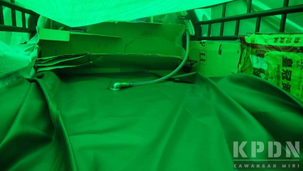 MIRI: Bahagian Penguat Kuasa Kementerian Perdagangan Dalam Negeri (KPDN) Cawangan Miri telah melaksanakan satu serbuan terhadap sebuah kenderaan yang disyaki terlibat dalam kegiatan penyelewengan barang kawalan, iaitu minyak diesel.