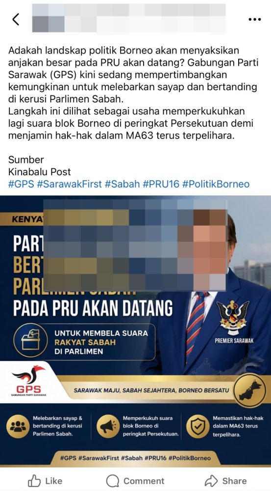 KUCHING: Kenyataan tular di media sosial yang mendakwa Premier Sarawak, Datuk Patinggi Tan Sri Abang Johari Tun Openg menyatakan Gabungan Parti Sarawak (GPS) mempertimbangkan untuk bertanding di Sabah pada Pilihan Raya Umum (PRU) akan datang disifatkan sebagai berita palsu.