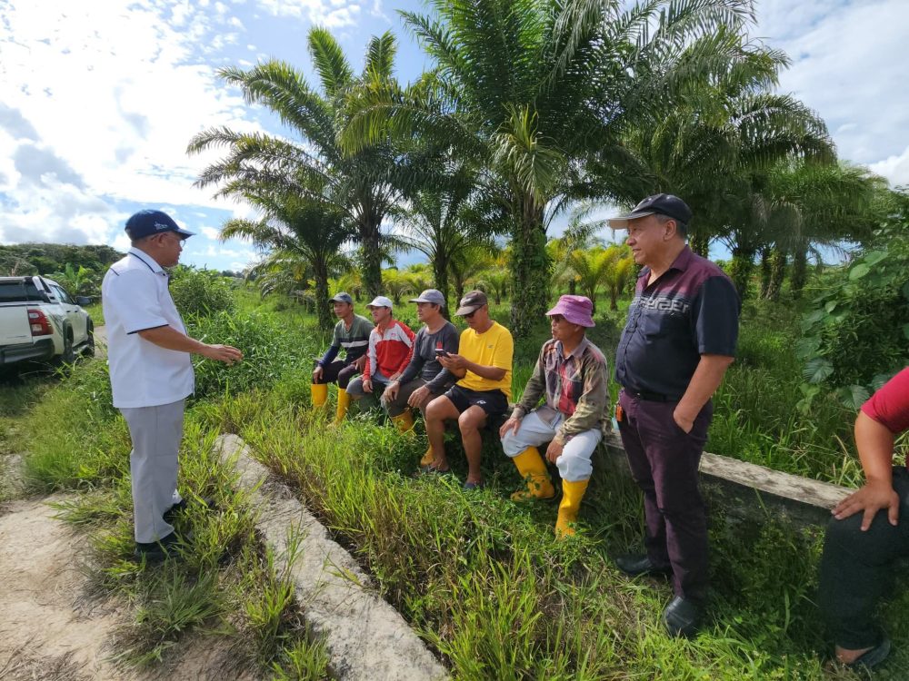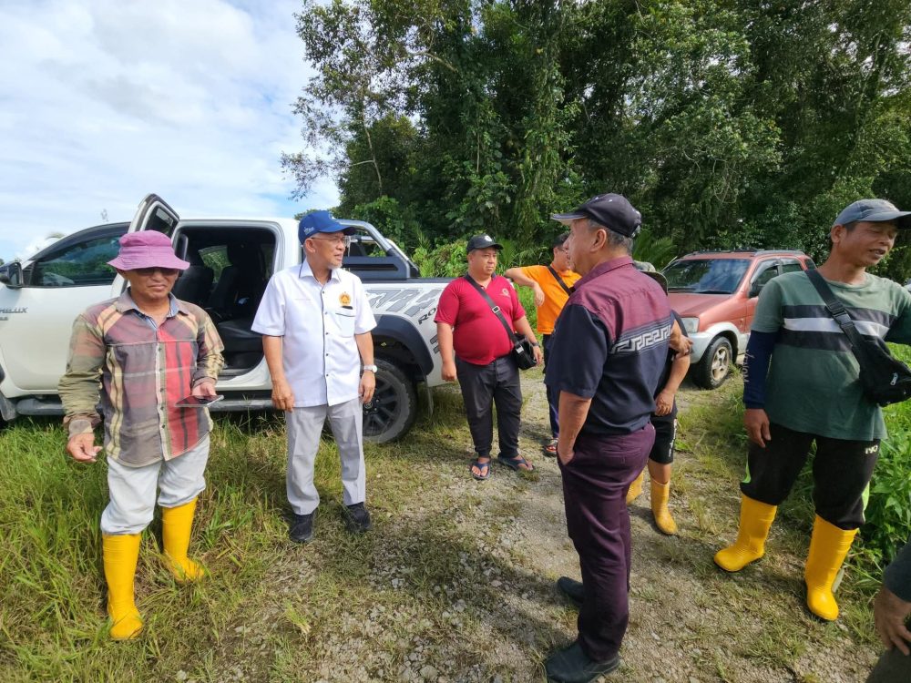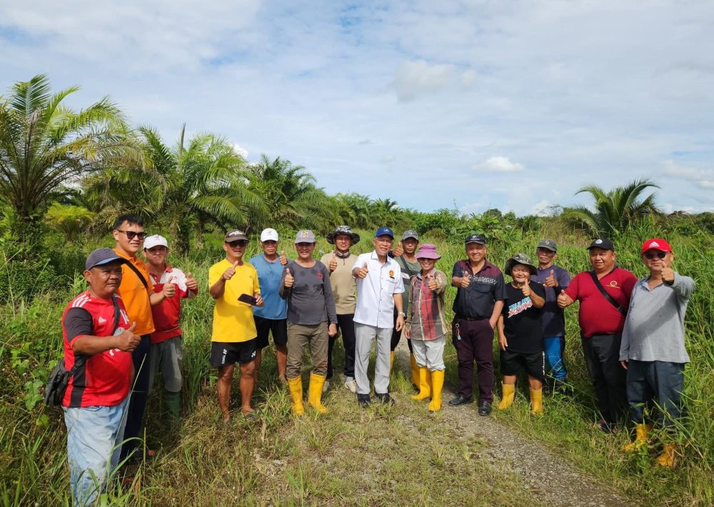 Mohamad Duri meninjau keadaan JPD menuju ke Rumah Panjang Rengan Selambong yang melalui kawasan tanaman padi, kelapa sawit serta pelbagai jenis pokok buah-buahan. Foto: ADUN Kalaka