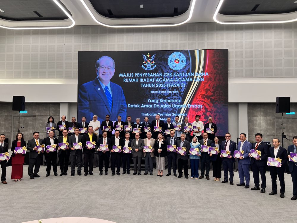“Sehingga kini, sebanyak RM35.77 juta atau 39.7 peratus daripada keseluruhan peruntukan RM90 juta bagi tahun 2025 telah disalurkan di bawah Fasa 1 dan Fasa 2, merangkumi 171 projek rumah ibadat di seluruh Sarawak,” katanya ketika berucap pada majlis penyerahan cek tersebut.