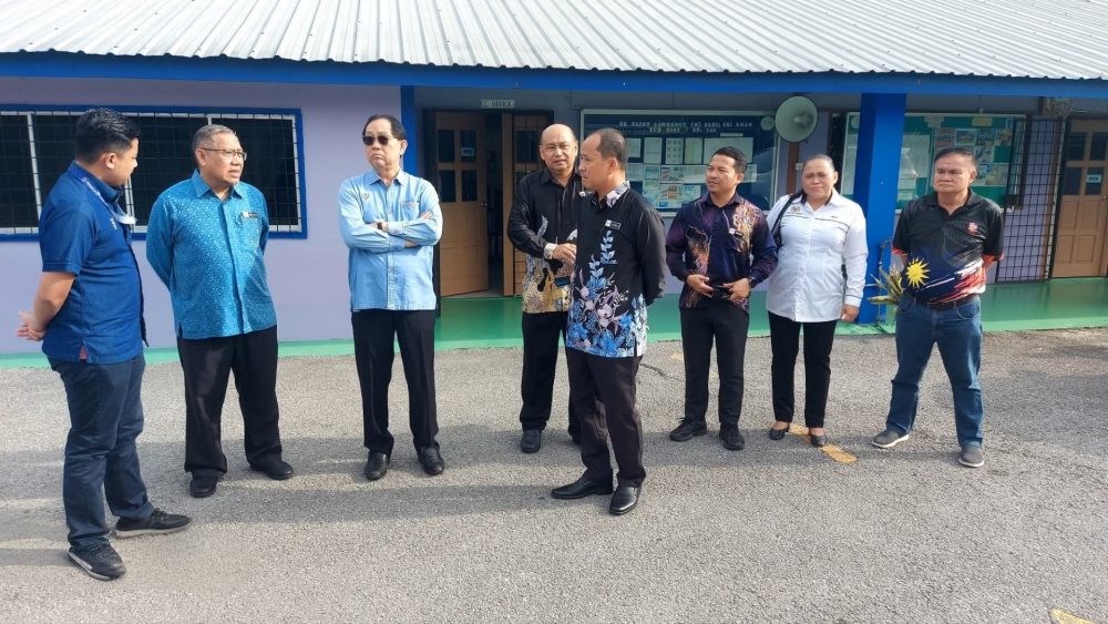 DATUK Francis Harden Hollis turun padang melakukan pemantauan pelaksanaan UP-DLP bagi memberi sokongan moral kepada murid Tahun 6 serta warga sekolah yang terlibat. Foto Pusat Khidmat ADUN Simanggang