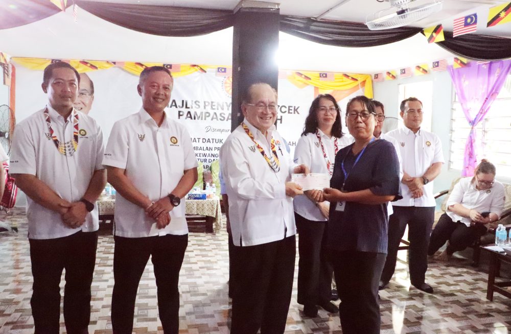 BETONG: Kerajaan Sarawak hari ini menyerahkan cek pampasan tanah berjumlah RM981,416.10 kepada penduduk yang terlibat dalam projek menaik taraf kemudahan infrastruktur jalan raya di bahagian ini.