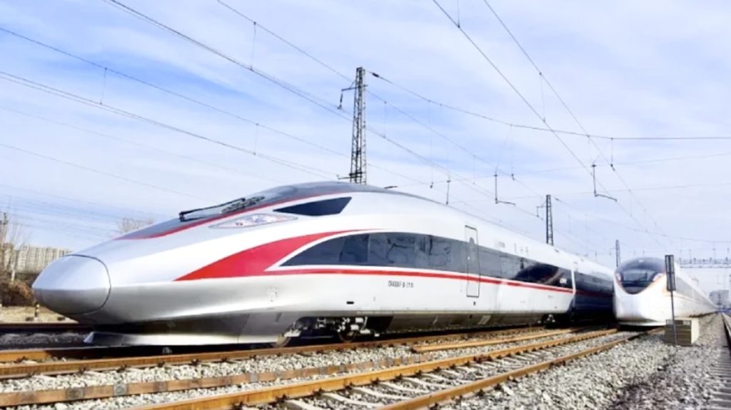 Kereta api laju CR400 Fuxing yang kini beroperasi bergerak pada kelajuan 350 km/j.