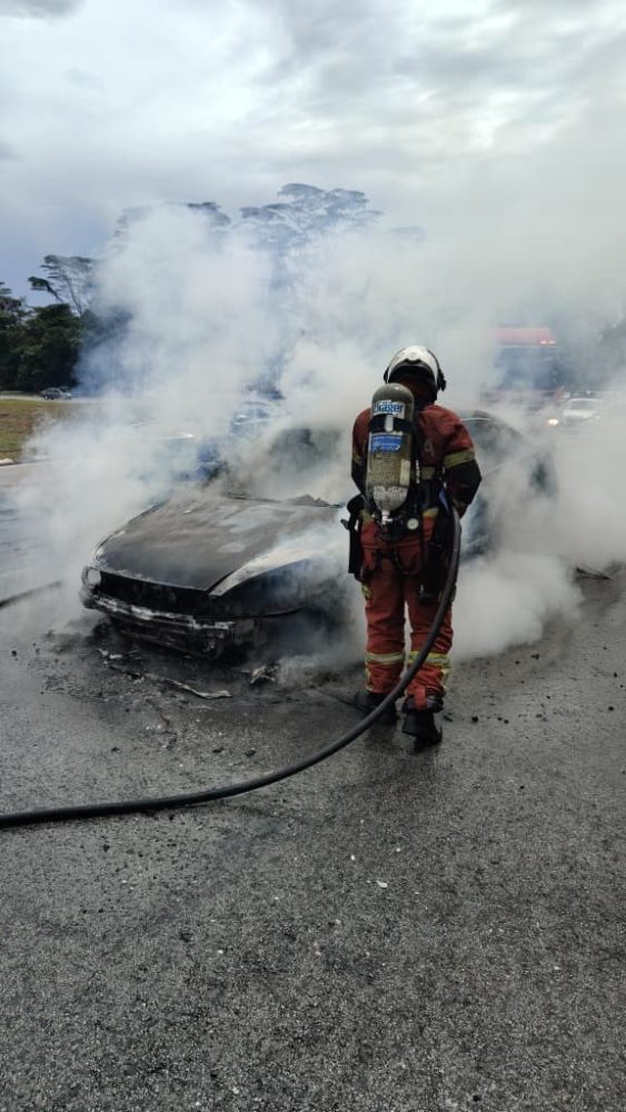 Kereta terbakar di Bulatan Kampung Gersik, pemandu sempat selamatkan diri