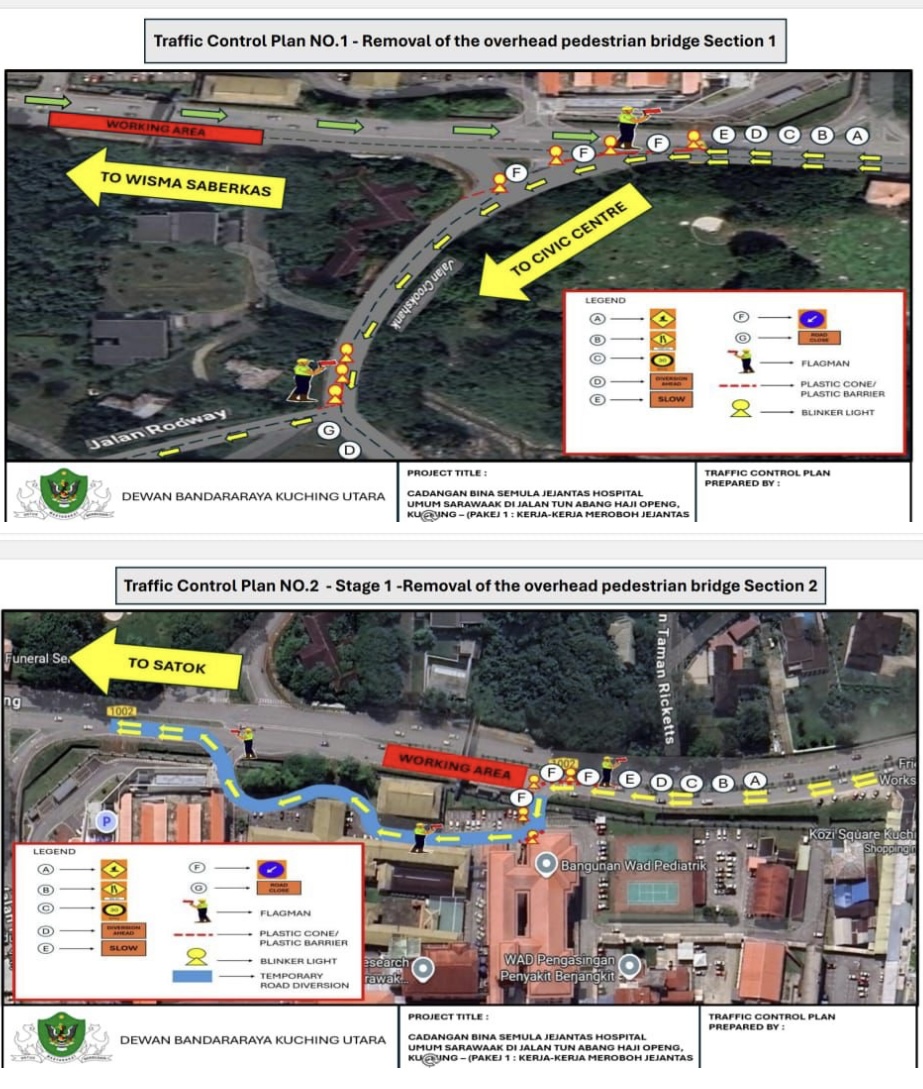 Ini sebagai sebahagian projek Cadangan Bina Semula Jejantas Hospital Umum Sarawak (Pakej 1: Kerja-Kerja Meroboh Jejantas).