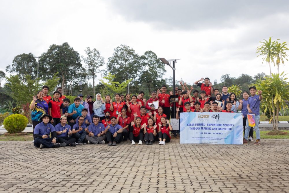 KOLEJ Universiti i-CATS menerajui inisiatif khidmat komuniti berteraskan tenaga boleh diperbaharui menerusi Program Masa Depan Solar – Memperkasa Sekolah bersama pelajar SMK Lundu dan SMK Singai, baru-baru ini. Foto UKAS