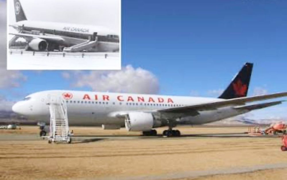 Juruterbang berjaya mengemudi Boeing 767 tersebut mendarat di sebuah litar lumba kereta lama di Gimli, Manitoba, tanpa menyebabkan kecederaan serius kepada penumpang.