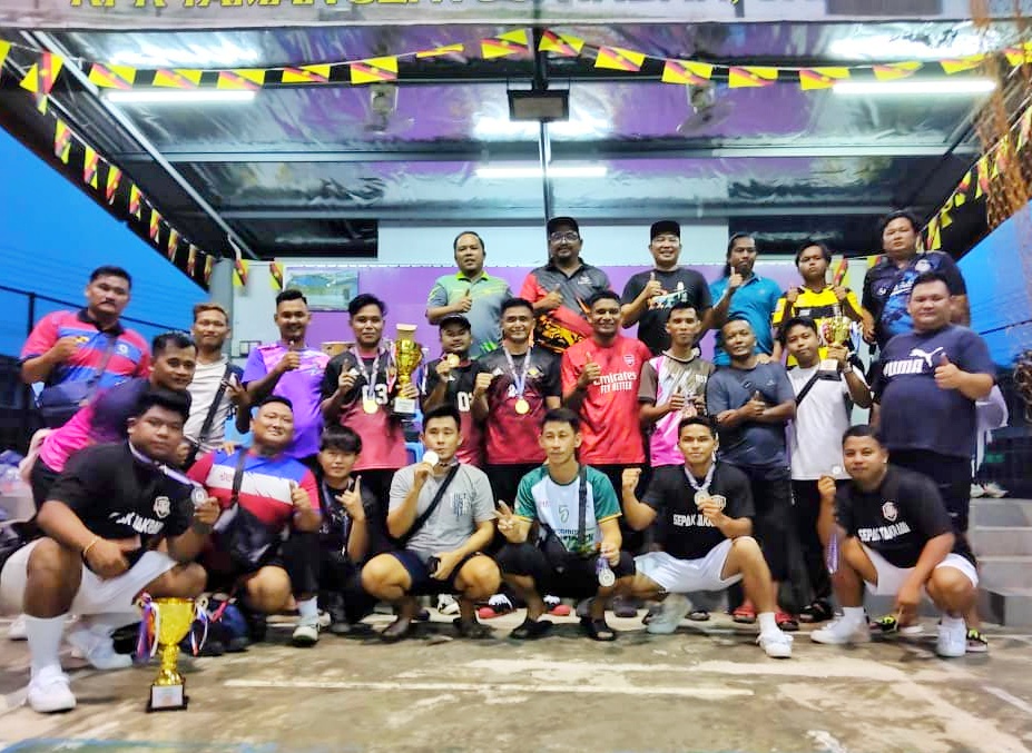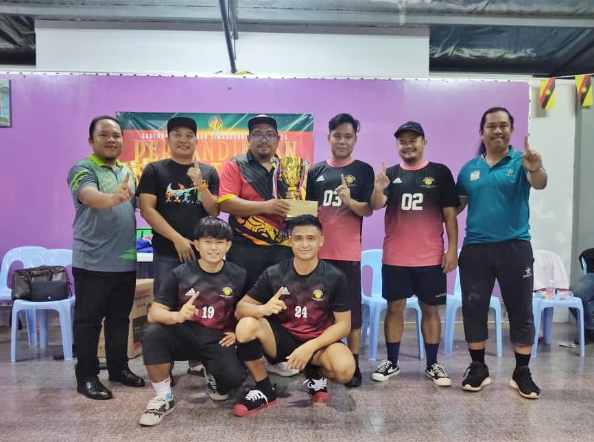 Regu KESETABB A muncul juara dalam Pertandingan Sepak Takraw Karnival Sukan Saberkas (KASUS) 2025 yang berlangsung di Gelanggang Sentosa Indah RPR Sri Aman, hari ini. Foto: KESETABB
